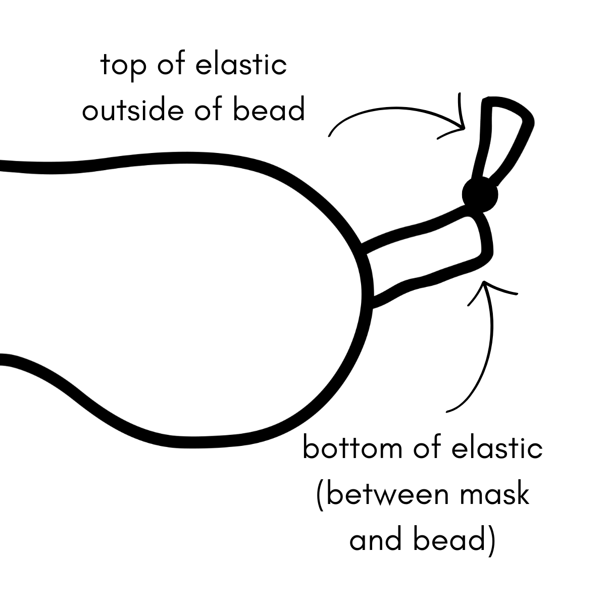 Locate the top of the elastic strap on the outside of the bead. Gently pull the strap to make the mask snugger on your head.